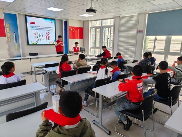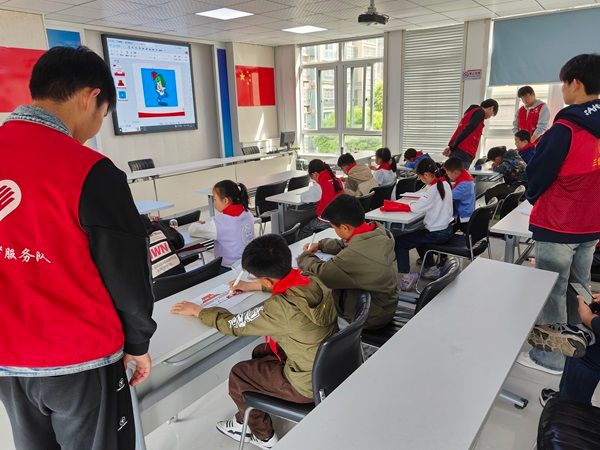 最后,团员青年志愿者们又带领社区青少年学生重温了红领巾的标准系法,并且告诉学生们红领巾的含义是少先队员的标志,它代表红旗的一角,是用革命先烈的鲜血染成的。这不仅象征着正义、光荣和勇敢,还代表了爱国主义、团结友爱以及勤劳、勇敢、奋发向上的精神。