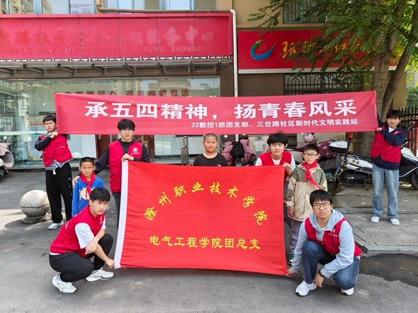 为深入学习贯彻党的二十大精神,持续推进学习习近平新时代中国特色社会主义思想,汇聚青春正能量,团结带领广大团员青年传承五四薪火,引领时代新风,电气工程学院团总支以理论+实践的工作方法,开展了传承五四精神主题团日活动。 4月29日下午,23数控一班团支部赴三岔路社区新时代文明实践站开展了“五四精神传星火,青春筑梦伴同行”为主题的实践教育活动。活动伊始,由我院优秀团员代表面向社区青少年学生讲解五四运动历史由来和深远意义。
