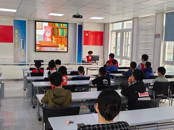 随后带领社区学生一同观看五四青年节知识动画小短片,用动画片的方式去更好地宣传五四精神。