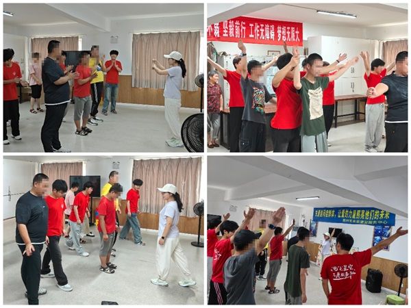 随后,通过健美操基本动作的教学将青春的活力与气息燃满了整间教室。在志愿者的精心教学与指导下,星星孩子们学会了健美操的基本步伐、手势动作和八拍口令,展现出了极高的热情与活力,不仅锻炼了星星孩子们的身体素质,更有效提升了注意力、记忆力等认知能力。