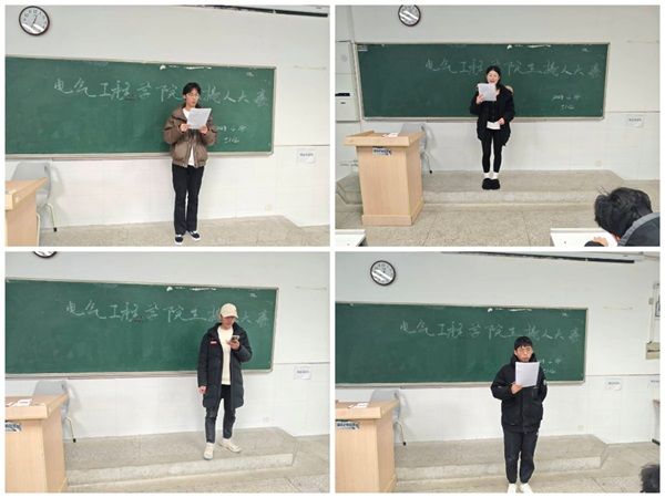 比赛开始,参赛选手们依次登场,他们台风稳健,自信地展示着精心准备的自我介绍和才艺表演。比赛要求是根据既定的主题,在规定的时间范围内自由组织语言,完成言语表达。赛后评委们对选手们进行了提问环节,最后评委们则根据每位选手的表现,从语言表达、形象气质、舞台表现力等多个方面进行打分并评选出名次,张翔和徐文跃同学荣获一等奖。