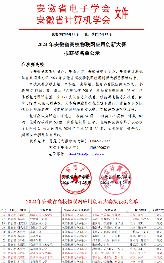 电气工程学院在2024年安徽省高校物联网应用创新大赛取得佳绩