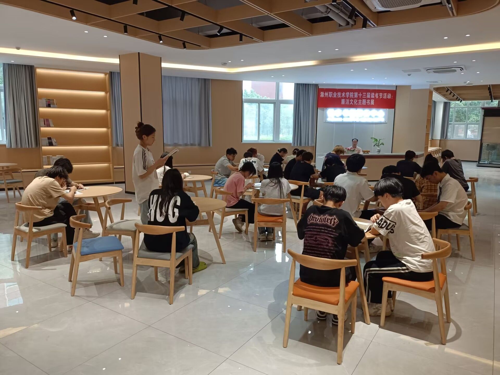 为引导学生树立廉洁意识,弘扬清风正气,营造崇廉尚洁的校园文化氛围,6月11日下午,校第十三届读书节之廉洁文化主题书展活动在“一站式”学生社区悦享书屋成功举办。