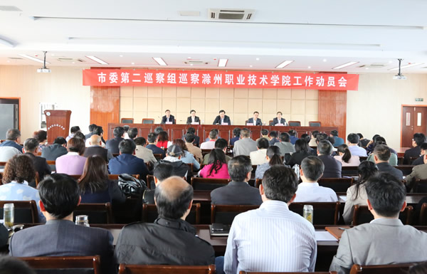 滁州市委常委、市纪委书记李玉平出席会议并作动员讲话。市委第二巡察组组长、南谯区政协党组副书记、副主席陈东风,市委第二巡察组副组长、市经信委纪检组长常树应,市委第二巡察组成员张友龙、余传洲、韦跃花、陈菊、吴成龙出席会议。Beat365唯一官方网站党委书记杨甫祥主持会议并作表态发言。学院党政领导班子成员、二级机构负责同志(正副职)、副高级以上职称的院“两代会”代表和近四年来退休的县处级以上干部参加了会议。