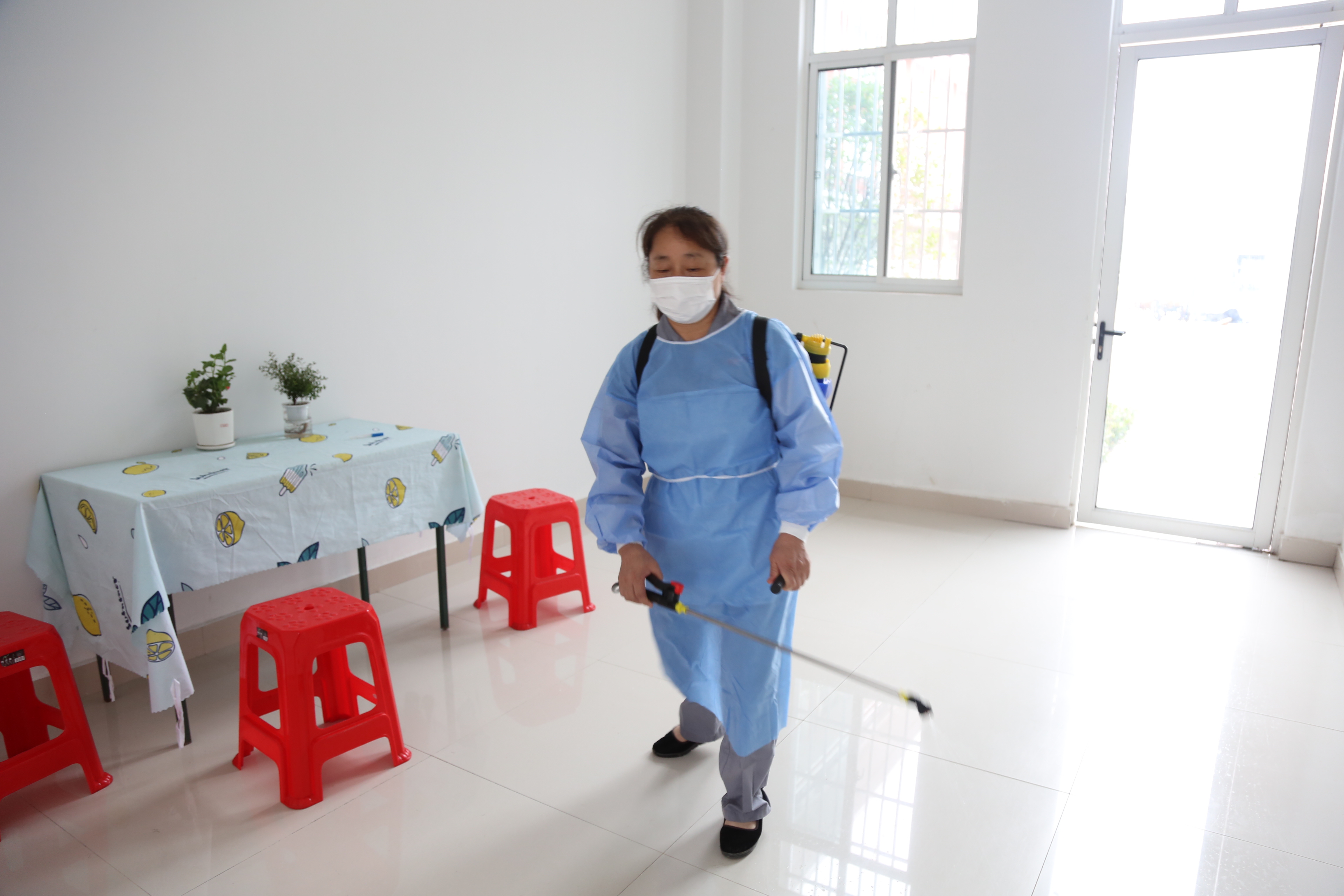 返校报到演练环节中,门卫引导返校报到“学生”按照地贴位置间隔1米排队等候,查验安康码、行程码、48小时核酸检测阴性证明,鞋底消毒、行李消毒、测量体温、更换口罩、手部消毒。确定体温正常进入校园,体温异常者送往隔离区立即启动防疫程序,妥善处置。学生返校后进入学生宿舍前,进行二次测温及扫码登记,体温正常进入寝室,体温异常者立即启动防控工作联动机制的应急响应。公寓管理员详细登记异常学生信息并送往隔离区做好转运准备,对公寓大厅、过道和发热学生所在寝室进行全面的消毒杀菌工作。