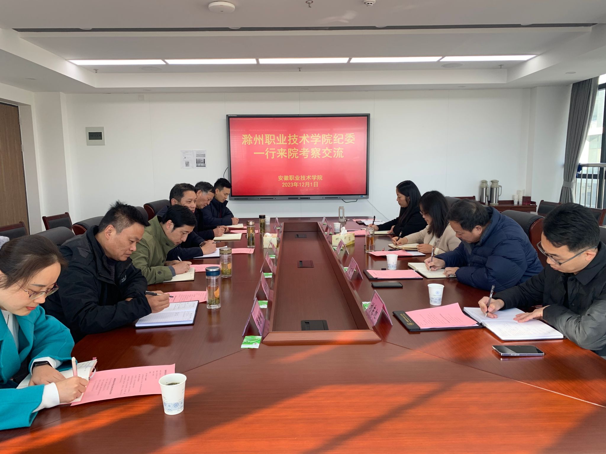 12月1日,安徽职业技术学院党委委员、纪委书记李荣富等热情接待了Beat365调研组。会前,调研组实地参观了清水湖、团结大道文化长廊、体育馆和“清廉安职”廉洁文化作品展。