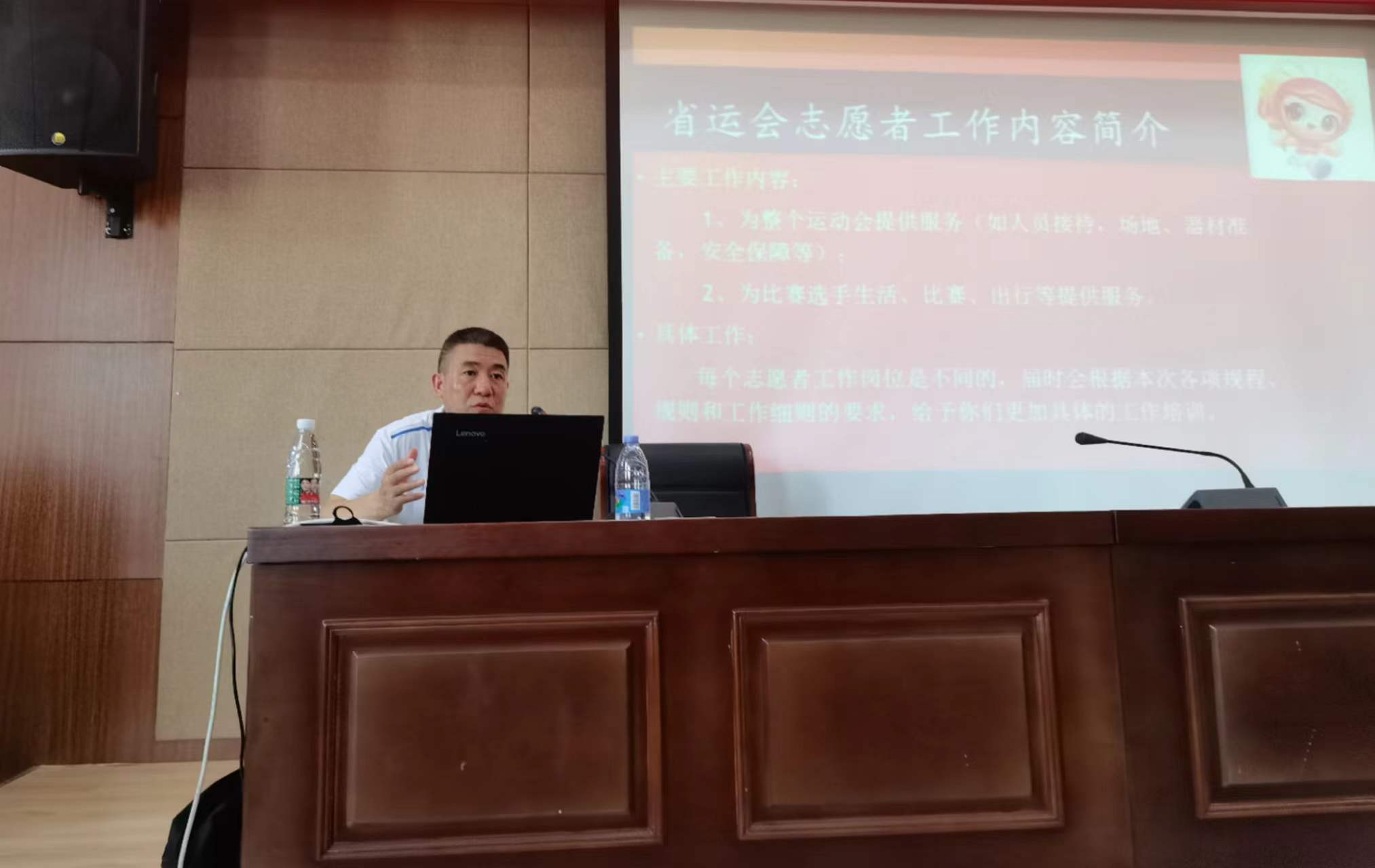 王校长根据省十五运赛事的相关要求,用图文并茂的方式,结合具体工作场景和案例,详细讲解了省运会对志愿者行为规范的具体要求,让志愿者们获益匪浅。