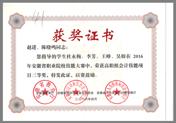 (会计技能项目三等奖)