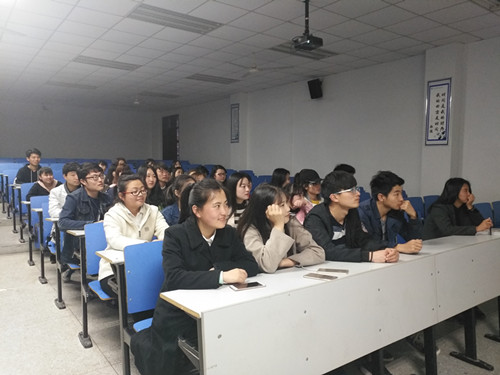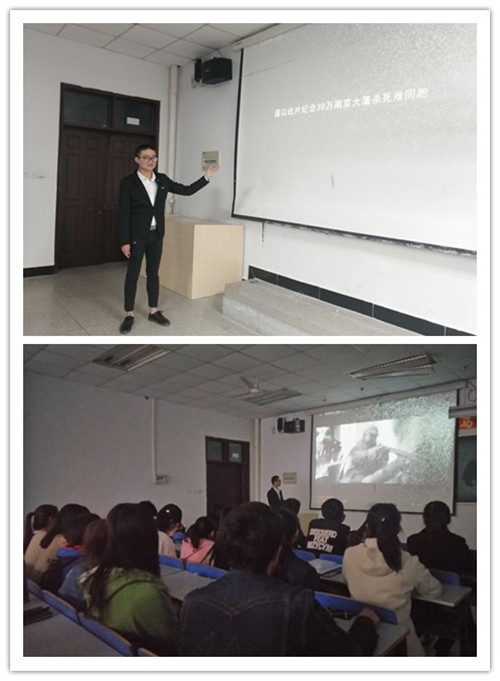 首先,主持人向现场同学介绍此次观看的电影的文化背景,同学们在主持人的引导下,认真地观看了电影《南京南京》,同学们纷纷被电影情节所感染,现场气氛凝重。