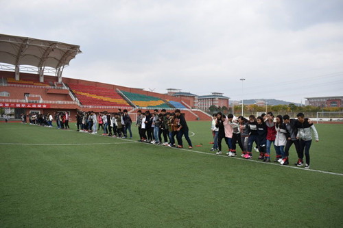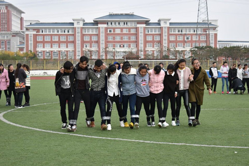 为了丰富课余文化生活,促进交流,增强同学们之间的团队意识和协作精神。2016年11月8日中午,经济贸易系团总支,学生会组织2016级新生共20多个班级在新操场参加了第七届“十人十一足”趣味比赛。