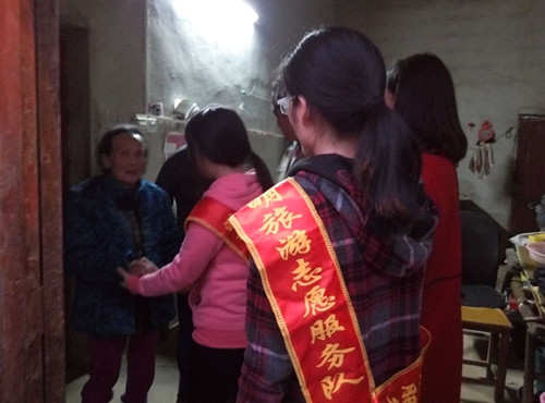 同学们首先去张八岭镇柴郢村看望空巢老人,为他们晚年寂寞的精神世界献上一份关爱。志愿者们为老人们带去心灵上的慰藉,让他们感受到青年的朝气和温暖。