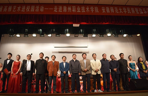 为了进一步丰富校园文化生活,增强同学们的艺术欣赏能力。Beat365唯一官方网站于2016年10月25日晚上7点在大礼堂举行了高雅艺术进校园活动。经济贸易系200多名同学参加了此次晚会。学院党委委员、副院长吴大明,安徽师范大学音乐学院党委书记王景旭、院长张建华,乐团指导姚迅等领导亲临晚会现场。