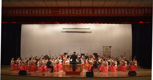活动主要是由安师大师生们给我们带来的精彩的艺术表演。活动首先由主持人一一为我们介绍各种乐器并阐明各种乐器的用途,让同学们耳目一新。接下来第一首《欢腾的日子》带动全场气氛。竹笛独奏《牧民新歌》赢得同学们的阵阵掌声,《龙腾虎跃》承载了管弦乐团的舞台记忆,象征激昂辽阔、振奋人心的管弦精神。最后一曲《花好月圆》为节目落下圆满帷幕。