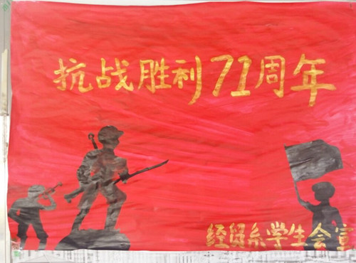 为大力弘扬爱国主义精神和抗战精神,培育和践行社会主义核心价值观,激发民族自信心和自豪感。2016年9月3日,经济贸易系团总支、学生会组织同学们画纪念抗战胜利71周年宣传海报。