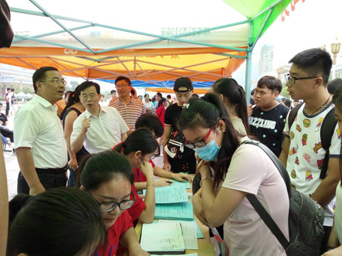 炎炎烈日,难敌新一届求学渴望;默默奉献,方显志愿者无私与真诚。2016年9月10日,经济贸易系2016级迎新工作正式启动,本次迎新活动受到学院领导的高度重视,学院党委书记杨甫祥和院长李柱梁等亲临经济贸易系新生接待现场指导工作,确保迎新工作顺利圆满完成。