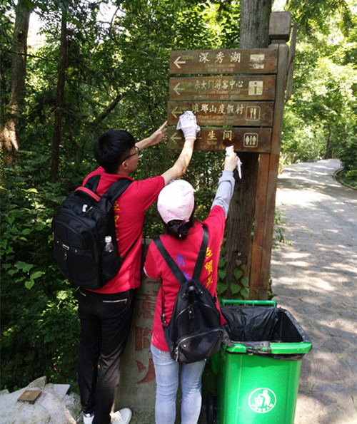 为了让同学们认识到文明旅游的重要性,2016年7月2日,经济贸易系暑期社会小分队来到了滁州市琅琊山旅游景点开展了关于文明旅游的相关活动。
