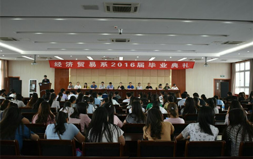 2016年7月5日,经济贸易系2016年毕业典礼在五楼报告厅举办。经济贸易系主任翁嘉晨,副主任宋君远以及各教研室主任出席了本次典礼。团总支书记何堃主持这次典礼。