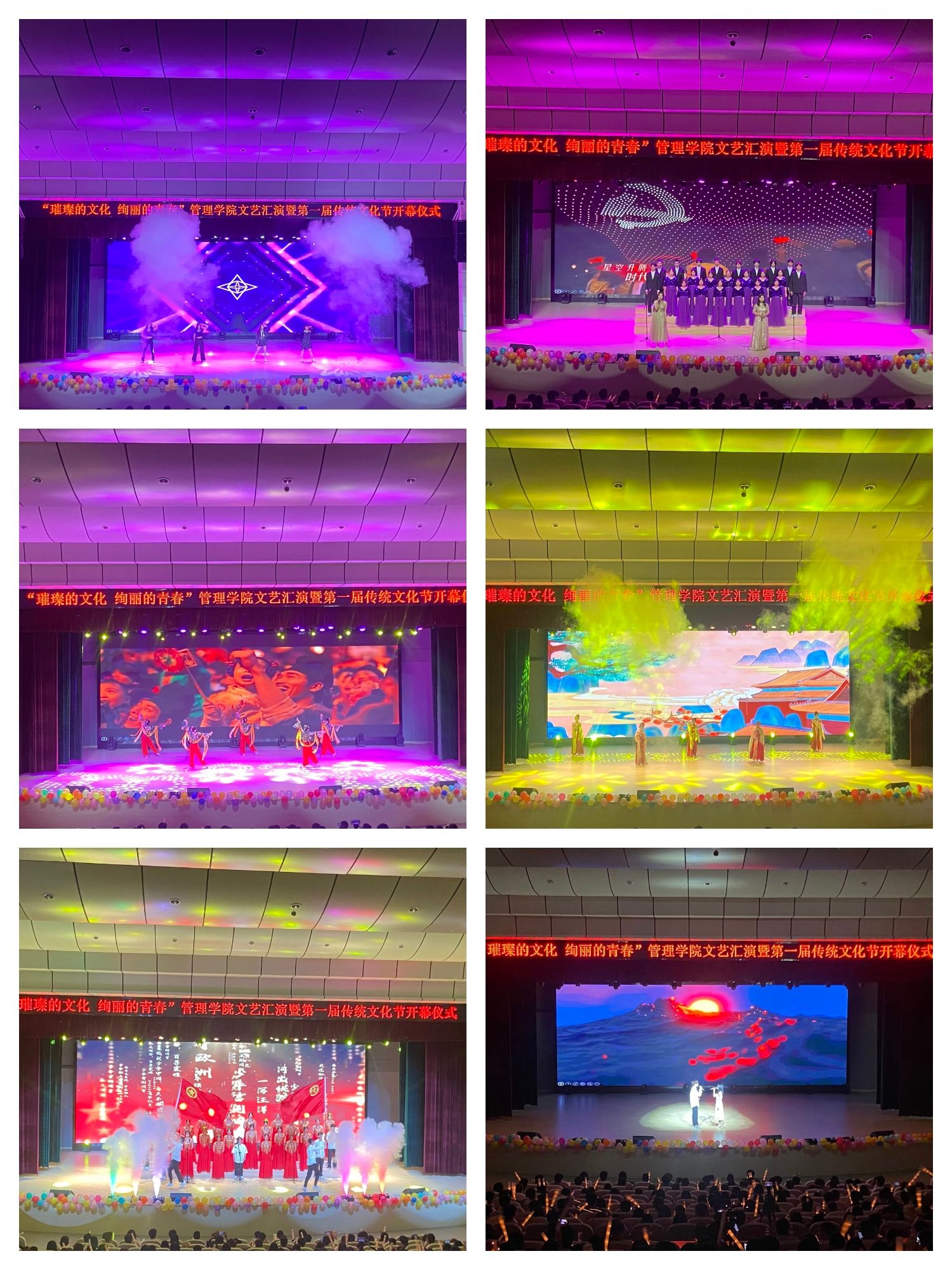5月25日下午,管理学院举办“璀璨的文化,绚丽的青春”文艺汇演暨第一届传统文化节开幕仪式。校党委委员、副校长胡凼、管理学院院长、党总支副书记翁嘉晨、管理学院党总支书记耿学刚、管理学院党总支副书记、交通运输学院党组织负责人朱亚春、交通学院院长吴文斌、管理学院党总支副书记何文婧、教学秘书徐姗及管理学院、交通运输学院教师代表与全体同学一起观看了演出。