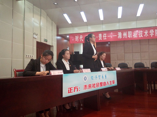 本场比赛正方选手来自经济贸易系,他们的观点是:未来的生活由人类主宰。反方选手来自汽车系,他们的观点是:未来的生活由机器人主宰。继正方慷慨激昂、反方从容不迫的自我介绍后,辩论赛正式拉开了序幕。