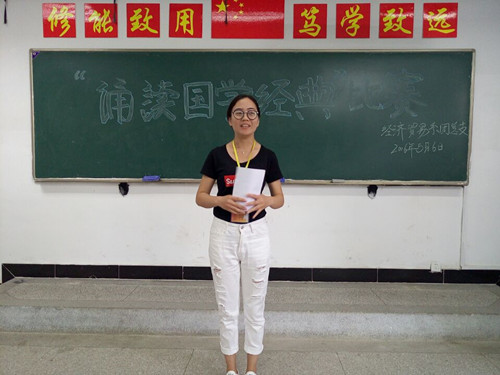 活动过程中,同学们声音洪亮,感情充沛,读出了国学的节奏感和韵律美。最终,15级会计4班曾佳丽获得第一名,15级会计5班费青青获得第二名,15级会计5班赵博文获得第三名,15级金融保险班张雪获得优秀奖。