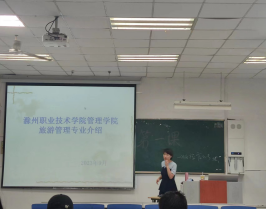 李老师首先对新生的到来表示热烈的欢迎,然后从对大学的介绍谈起,指出大学生活和高中的不同,并希望同学们在大学阶段开始树立“事业心”、尝试规划自己的人生;同时,也建议新生珍惜大学的同学之情,努力学习如何经营大学期间的人际关系,以此提升个人为人、处事的能力。接着,李老师还细致介绍了旅游管理专业的基本情况,从专业概况、课程设置、技能培养、竞赛考试以及就业方面等热点而实际的问题详细为同学们进行讲解,通过举例,告诉同学们“学些什么”、“怎样学”、“学完了有什么用”,并与同学们进行互动,引导同学们树立技能成才的目标,激发他们的学习热情。