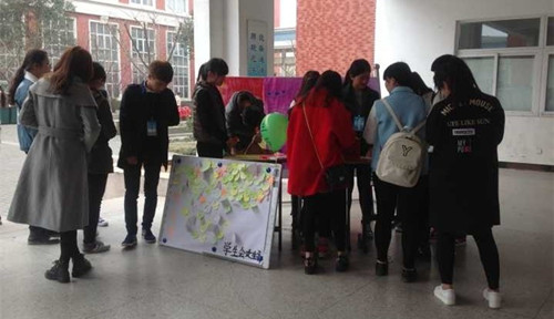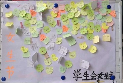 活动过程中,每位女生都积极参加,积极主动的在心愿板上贴上自己的愿望和祝福,工作人员给他们发放气球和小礼品,现场气氛十分活跃。还有一些女生围在一起畅谈自己的心愿,她们幽默的笑声和夸张的动作展现出了青春与活力。