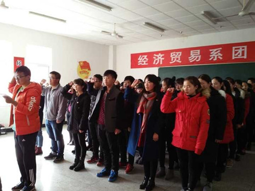 2015年12月4日,经济贸易系299名新团员在团总支的组织下,面对鲜艳的团旗,举行了隆重的入团宣誓仪式。