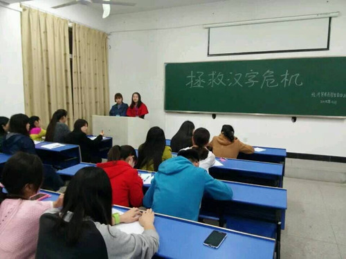 为了培养学生规范书写汉字的意识,感受汉字书写的艺术魅力,2015年4月7日晚7点,经济贸易系团总支、学生会在1308教室开展了“拯救汉字危机”的活动。