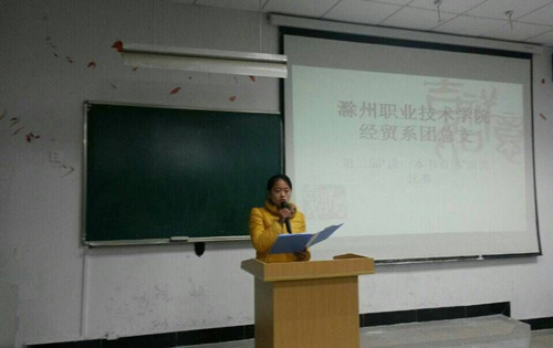 2014年12月24日,为提高同学们对阅读的兴趣,形成良好的读书氛围,经济贸易系团总支、学生会在致真楼1101教室开展第二届“读一本书有感”演讲比赛。