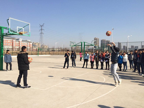 2014年12月25日,为了加强体育锻炼,激发同学们的运动兴趣,经济贸易系团总支、学生会积极组织14级同学们在新操场开展“投篮之星”篮球比赛。