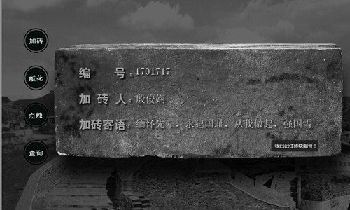 活动中,同学们登陆国家公祭日网站,进入到“众志成城·为了永不忘却的国家记忆”虚拟捐砖活动中,纷纷通过点击手机为南京城墙“加砖”,寄托了对遇难同胞的哀思。