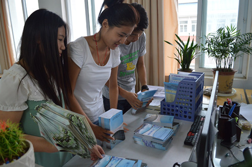 工作过程中,同学们认真的整理了系部的迎新手册,同时将新生的学费收据单按照班级的分配方式分配好,并交到各位负责新生班的老师手中;为表达经贸系对新生的热爱之情,同学们将欢迎新生的横幅高高的悬挂在至真楼前,那随风飘扬的横幅,仿佛在说“经济贸易系欢迎你们的到来”。