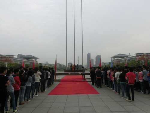 2014年5月4日清晨,经济贸易系团总支、学生会积极组织同学们参加了由院团委在综合楼前举行的“践行价值观,托举中国梦”主题升旗仪式。