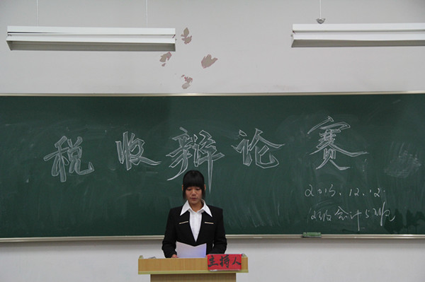 由经济贸易系《税收实务》老师翁嘉晨组织的2012级会计5班第二场税收辩论赛于2013年12月12日下午5点在致真楼310教室举行。