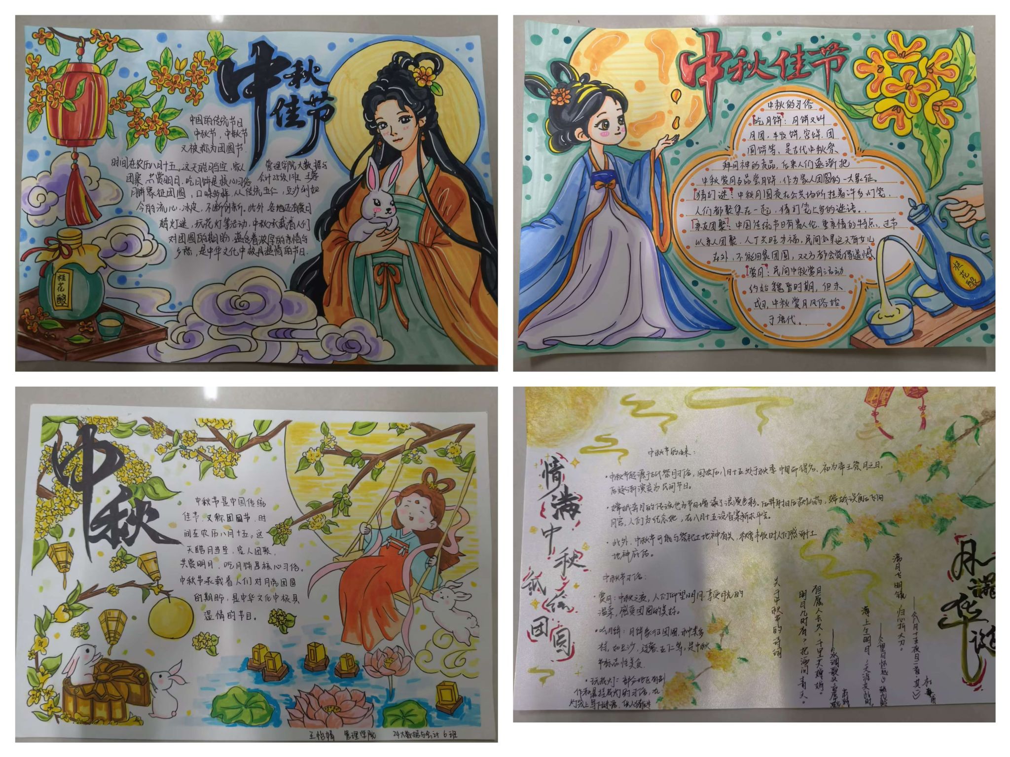 活动期间,学生们充分发挥创意,作品呈现多元风格:部分作品以细腻笔触还原嫦娥奔月、玉兔捣药等经典传说,搭配中秋主题诗词,尽显传统文化之美;部分作品融入图书馆、实训楼等校园元素,将校园景致与圆月、灯笼等中秋符号相结合,展现校园里的节日氛围;还有作品以文字为载体,在画面中融入对家人的思念与学业规划,传递真挚情感。