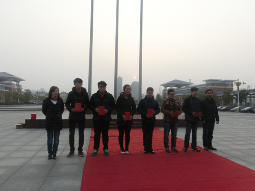 升旗仪式结束后,院团委副书记刘杰宣布“2014年学习雷锋青年志愿者活动”正式启动。经贸系程欢欢等10位青年志愿者因在2013年度青年志愿者活动中变现突出,被授予“优秀青年志愿者”荣誉称号。