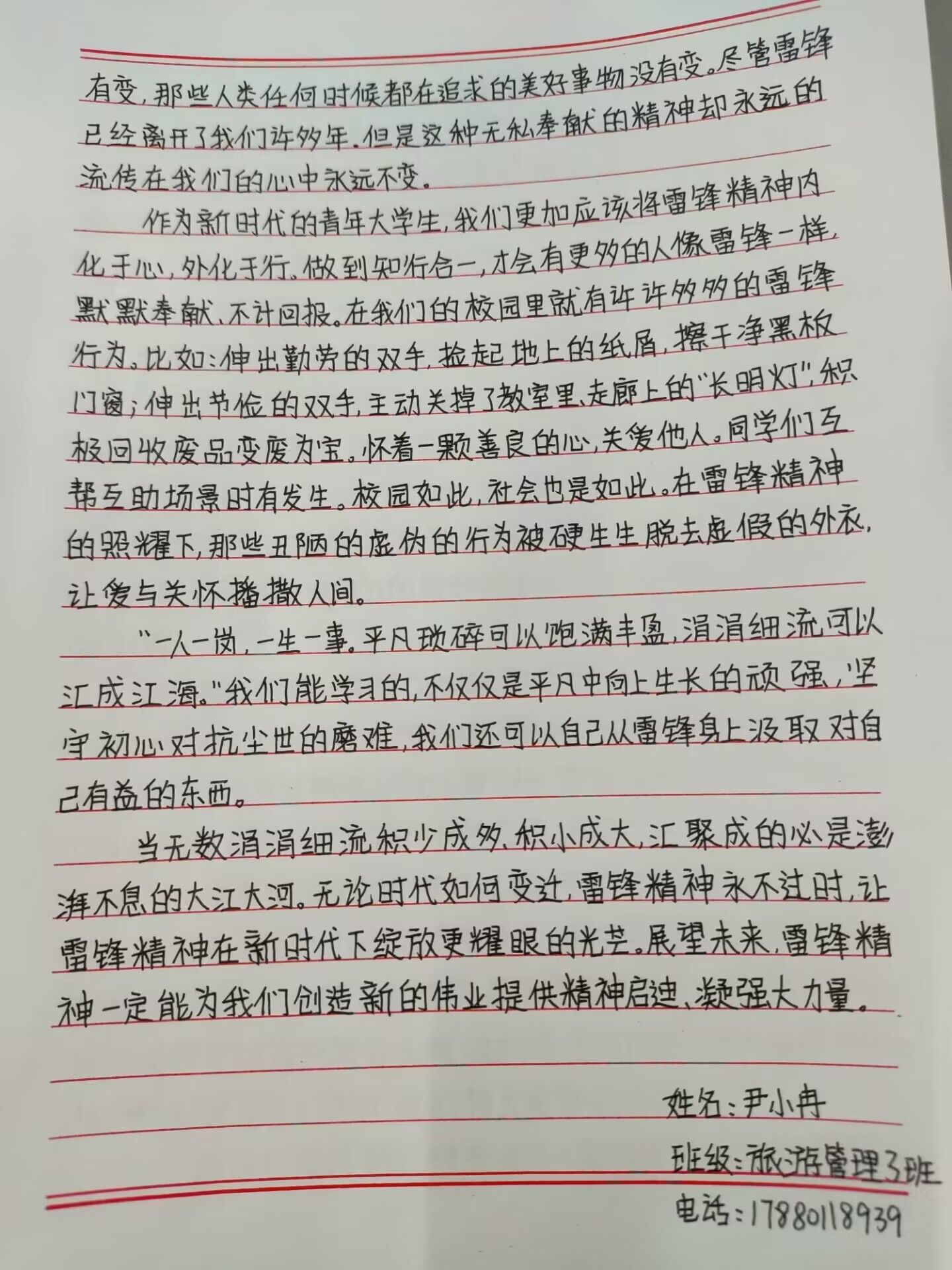 为了传承雷锋精神,2023年3月17日,管理学院学生会举办“学习雷锋好榜样,传递青春正能量”征文比赛活动。