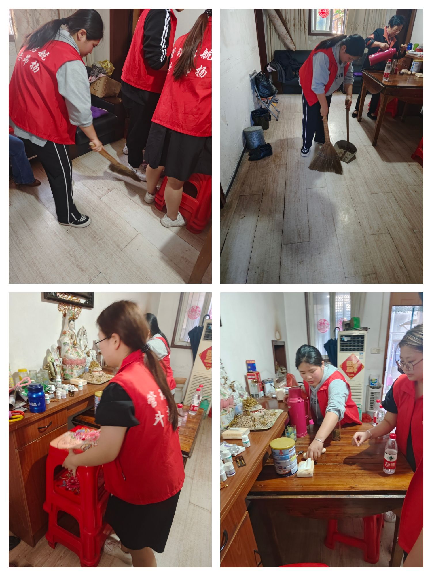 4月30日,由管理学院志愿者们对东后街养老服务站进行了大扫除活动。每个成员分别展开工作,先是在厨房将满是油渍的墙面进行洗刷,泛黄的墙面变得白了,随后用拖把将厨房和食堂打扫干净,大家不怕苦不怕累,对垃圾和杂物进行了彻底清理,不留卫生死角,不草率应付。打扫干净之后,大家又前往社区居民的家里,看望老人,对房间进行整理、清扫,将各个物品摆放整齐,将地面打扫干净,将门口的植物进行浇水养护。
