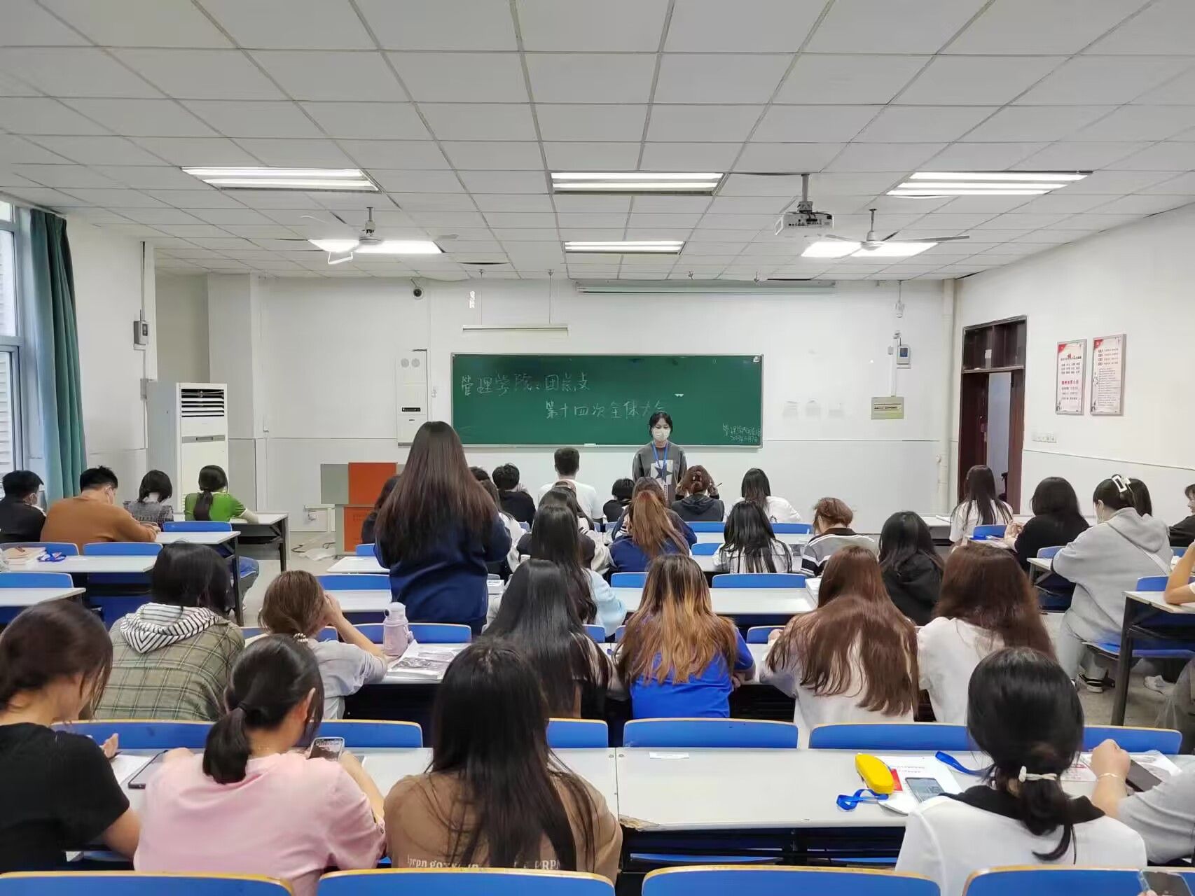 为进一步加强团总支的组织管理,同时也为了能更好的开展工作,管理学院总支于2023年5月7日18:30在1102教室开展了团总支第四届第十四次全体大会,本次大会由团总支副书记於美娜负责,团总支全体成员参加。