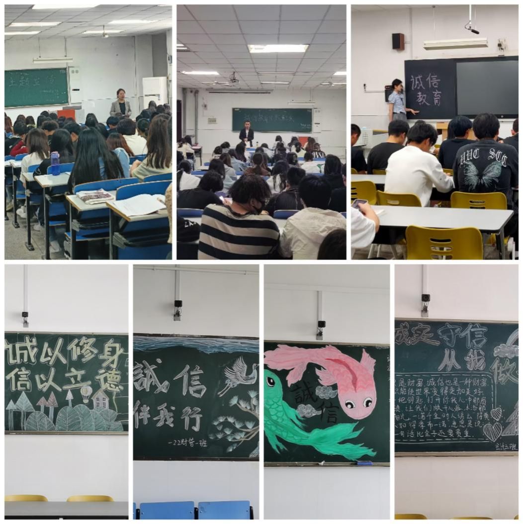 活动以召开主题班会的形式为前奏。通过班会课,旨在引导学生清楚地认识到诚信的重要性,使学生能够在思想上引起高度重视,进而用行动来实践做人、做事要以诚为本。随后,各班有序组织学生进行黑板报设计,用图画和文字描绘出自己心中的诚信。
