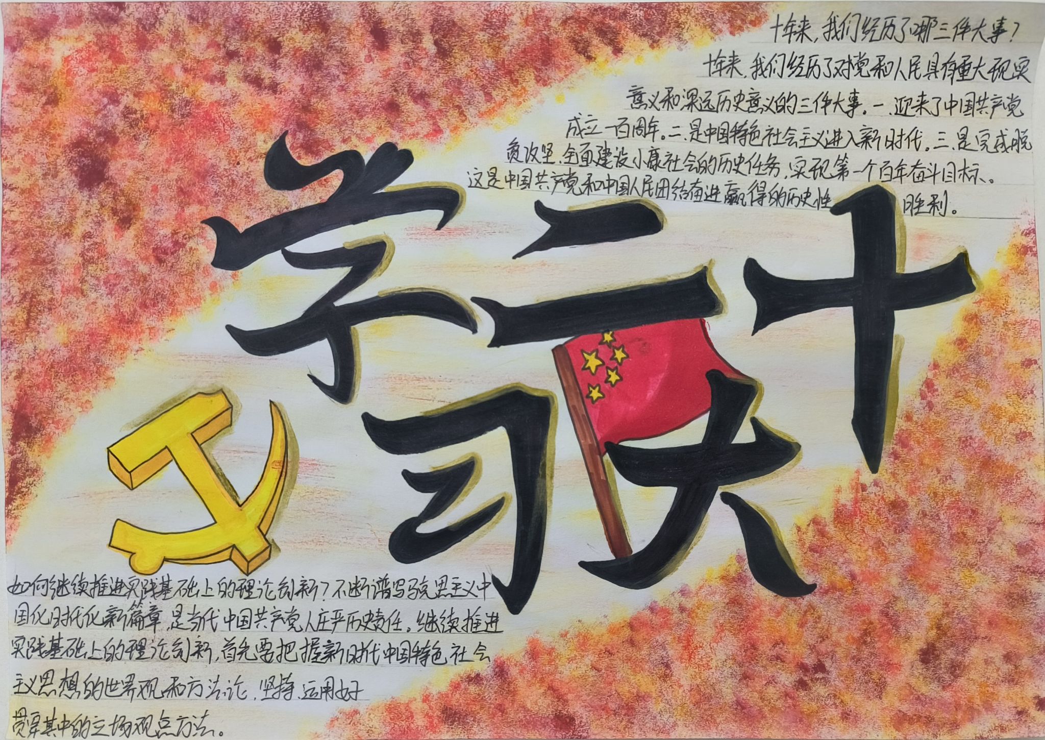活动开始,管院学子提起画笔,以画为媒,展现了十年来在中国共产党领导下中国取得的伟大成就,以饱满的热情、昂扬的精神状态宣传党的二十大精神,抒发了青年大学生的爱党爱国情怀,参赛作品主题鲜明、意蕴深刻、内容丰富。最后,由办公部内部评定并颁发奖状。