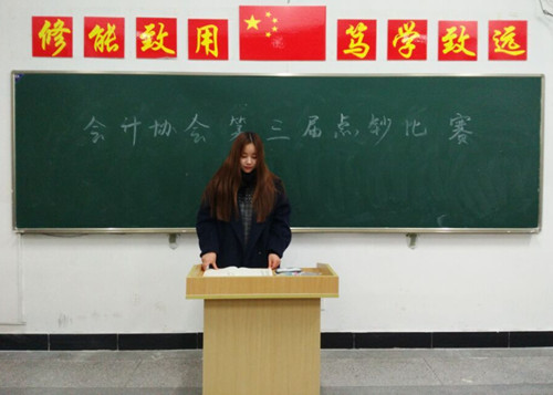 为了让同学们了解更多关于会计的知识,增强实践能力,营造良好学风。2015年11月30日中午,经济贸易系会计协会在致真楼1108教室举行了点钞大赛。