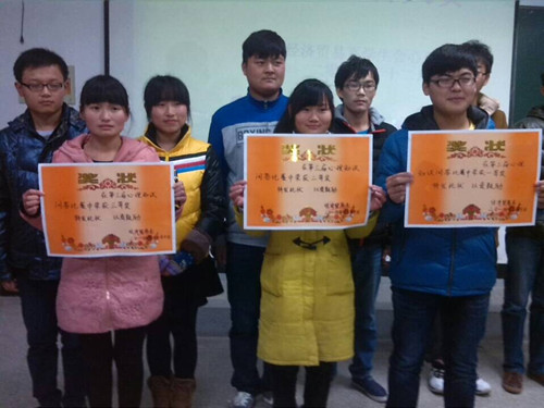 此次比赛以“和谐校园,心灵健康”为主题,参赛选手三人为一组,对主持人随机提出的问题进行解答。比赛现场气氛热烈,小伙伴们配合默契。经过激烈的角逐,第六组选手,来自14级电商1班的杨涛旭、罗号、王鑫获得第一名,第十六组选手,来自14级会计10班张肖肖、方军、谢瑞磊获得第二名,第三组选手,来自14级金保班黄耀艳、韩莹莹、马正强获得第三名。
