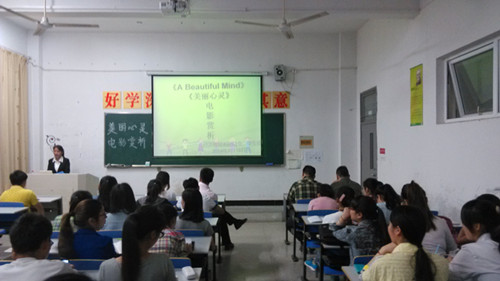 为了使同学们加倍努力学习,同时学会释放自己的心理压力,2014年5月18日晚,经济贸易系团总支、学生会在经贸系教学楼1108教室举办了《美丽心灵》电影赏析活动。