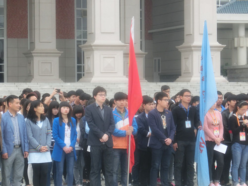 2014年5月4日清晨,经济贸易系团总支、学生会积极组织同学们参加了由院团委在综合楼前举行的“践行价值观,托举中国梦”主题升旗仪式。