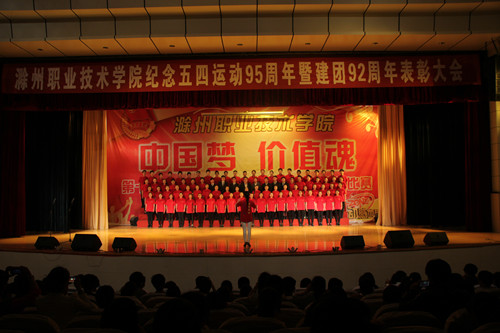 表彰大会结束后,经贸系主任翁嘉晨、党总支书记陈开兵带领合唱队积极参加了“中国梦、价值魂”主题大合唱比赛,嘹亮的声,磅礴的气势,精心的舞蹈,展现出经贸师生对祖国的无限热爱,最终获得了二等奖的好成绩。