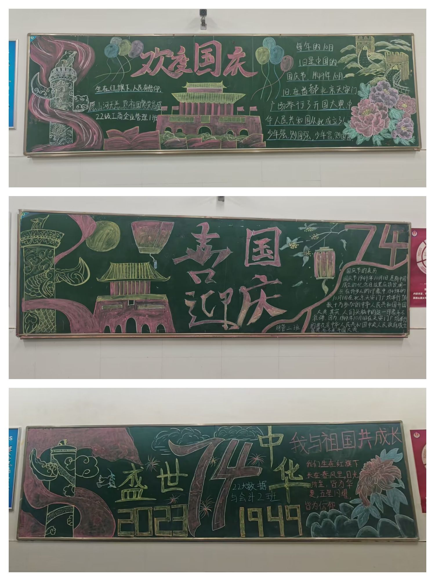 2023年9月25日,为了让学生感受国庆氛围,与伟大祖国共同欢庆,进一步增强学生民族自豪感和自信心,管理学院学生会举办了“喜迎国庆”主题黑板报比赛活动。