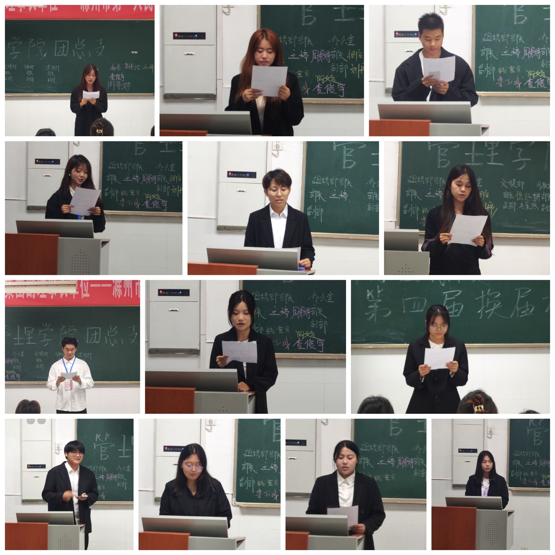 2023年11月1日中午12:00,管理学院团总支在1102教室举行换届大会。为切实加强管理学院团学组织有序发展,完善学生干部队伍建设。第四届团总支干事和第五届团总支干事全体参与。本次换届大会由第四届团总支副书记於美娜主持,团总支书记袁一老师及团总支第四届和第五届的成员参加会议。