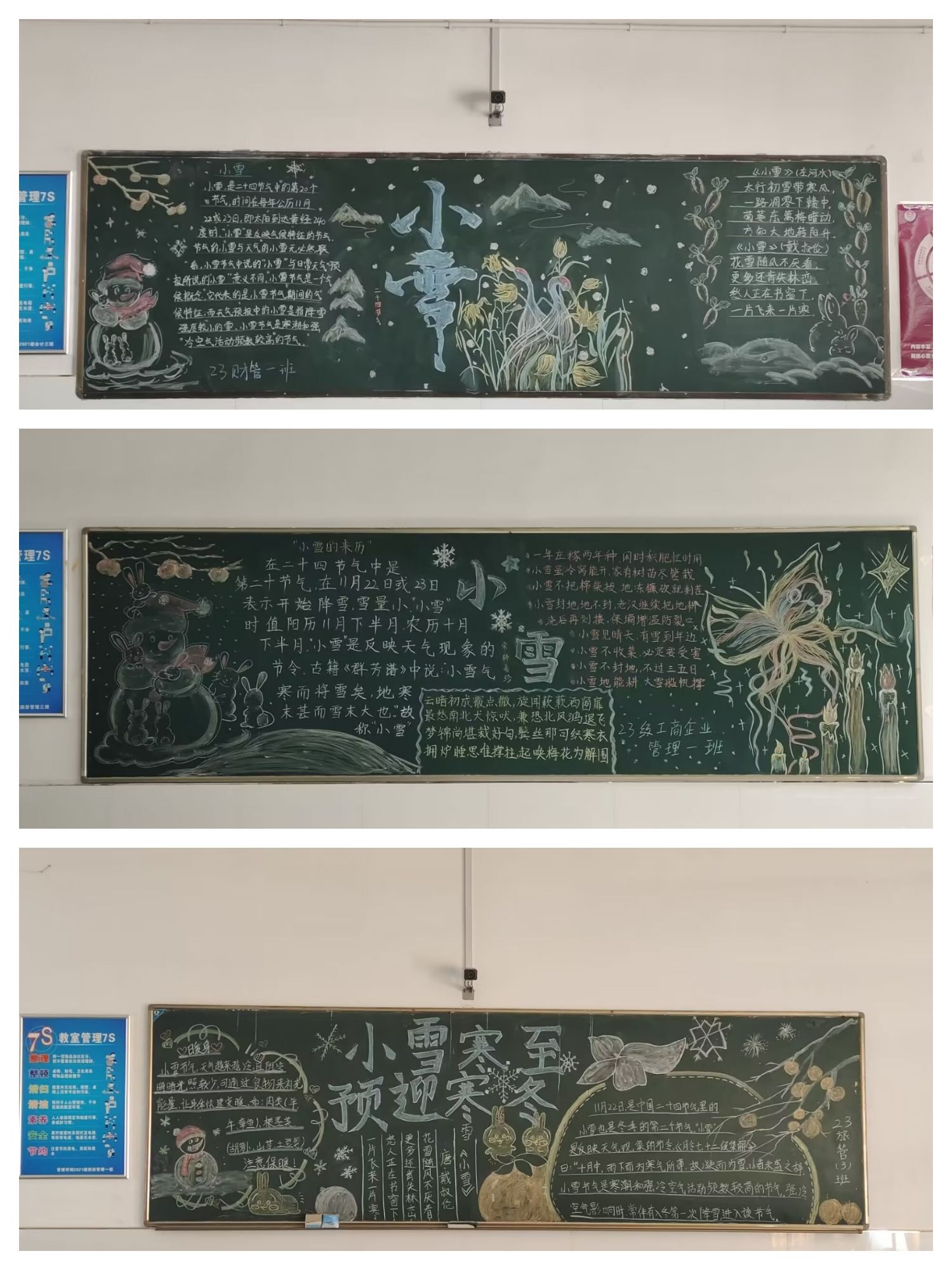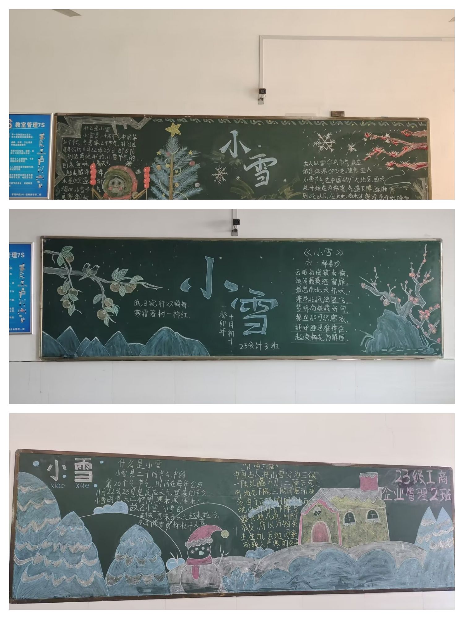 2023年11月21日,我院为了迎接“小雪”节气的到来,院学生会开展“小雪到,冬始俏”黑板报活动。