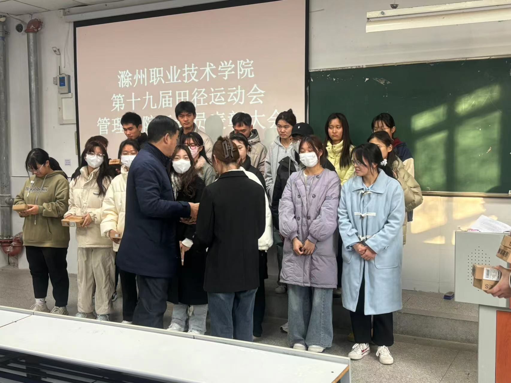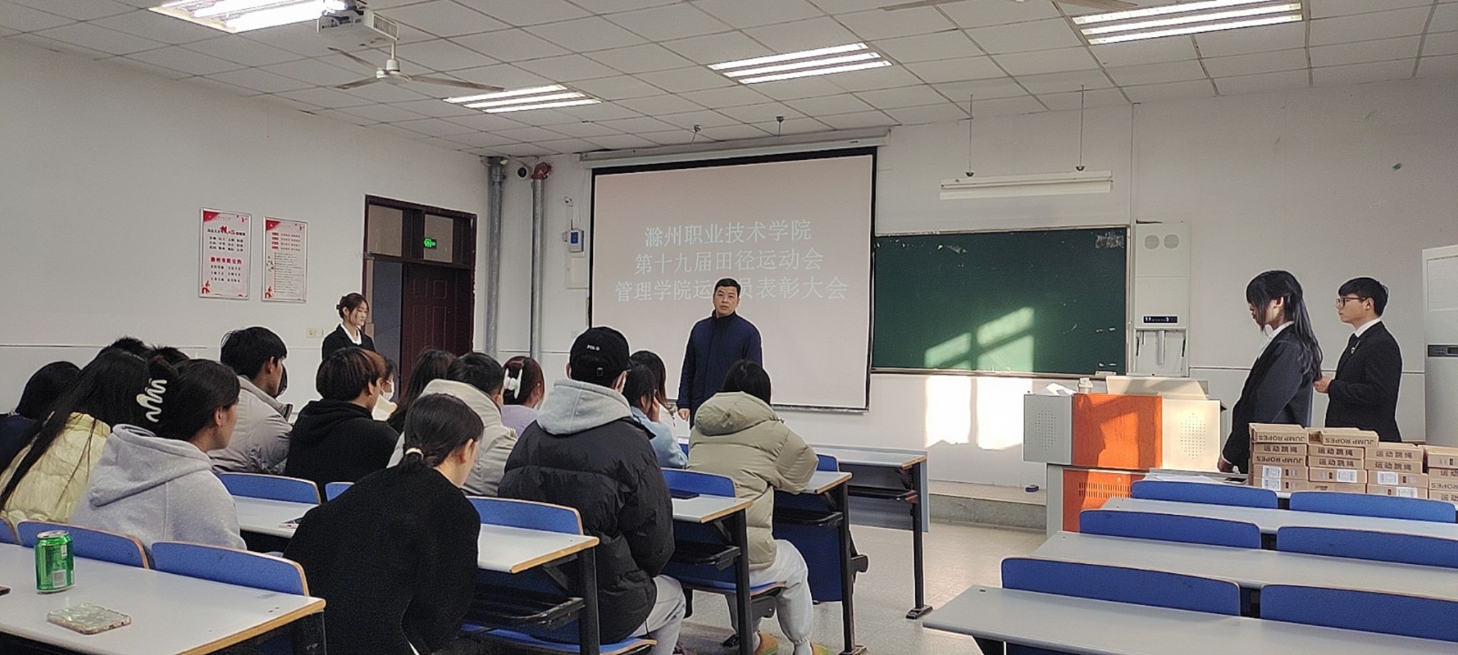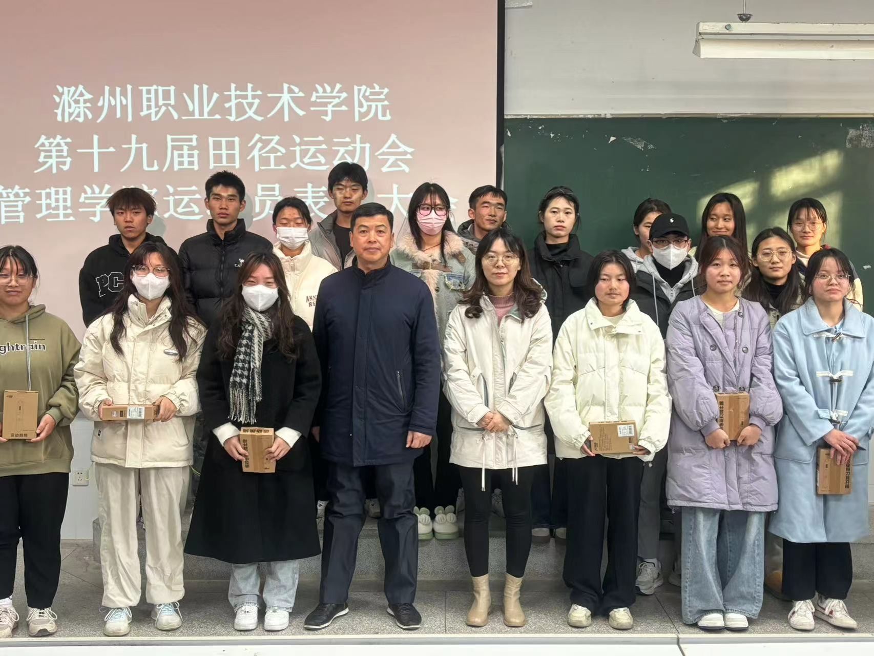 2023年12月1日下午3时30分在致真楼1101教室隆重举办第十九届田径运动会运动员表彰大会。学院党总支书记耿学刚和团总支书记袁一出席本次大会。